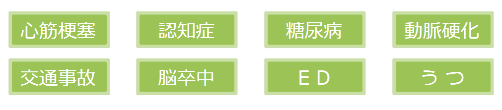 さらに、重症化すると脳梗塞や心不全などの循環器疾患、高血圧・糖尿病などの生活習慣病を合併するリスクが高まります。